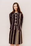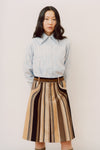 F/W 21 comes inspired by a nostalgia close-to-home, with the designer recounting her late Grandmother's rule that "flowers and stripes should never be mixed!" Part homage and part sartorial rebellion, the result is an eclectic pattern-clash that playfully challenges the notions of "good taste." Last season's vintage bedsheet motif comes upcycled both literally and figuratively, renewed as an all-over placement print teamed with the brand's penchant for retro-stripes. Fall unearths a sophisticated mood for the brand, underpinned by a soft, subdued colour palette and delicate take on tailoring.